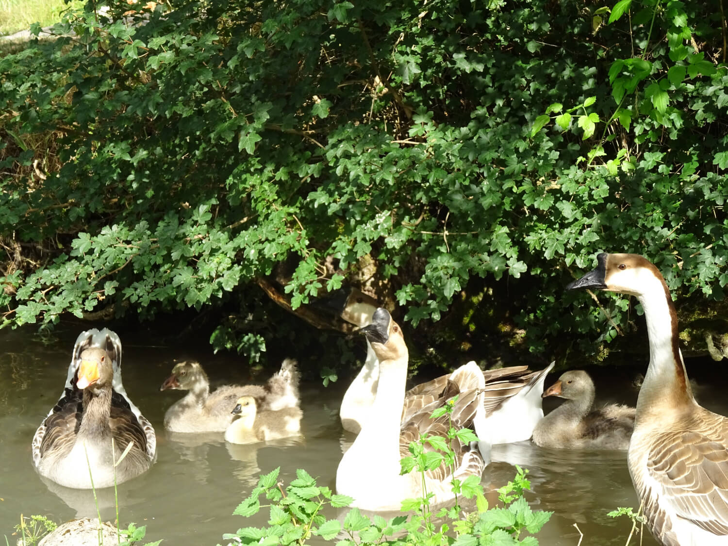 Nous élevons une petite basse-cour, composée d’une troupe d’oie, de poules pondeuses et de canards. Nous avons à coeur de les laisser en liberté pendant la journée, à la fois pour qu’ils vivent leur vie de la façon la plus naturelle possible, et aussi car ils entretiennent en partie les espaces verts.