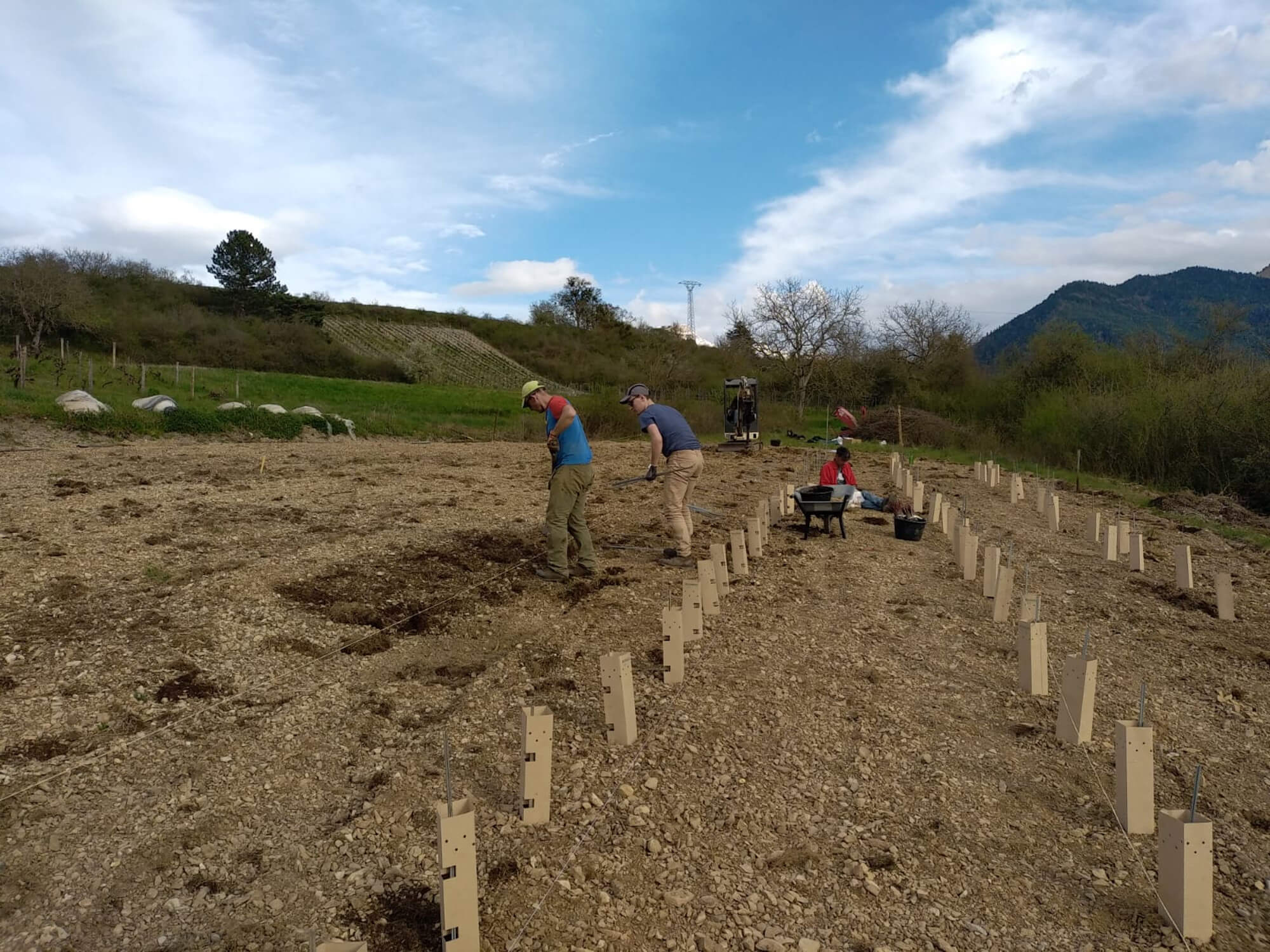 Nous avons planté des arbres fruitiers et des noyers, afin de mettre en place un verger familial, et de créer de l’ombrage dans les prairies.